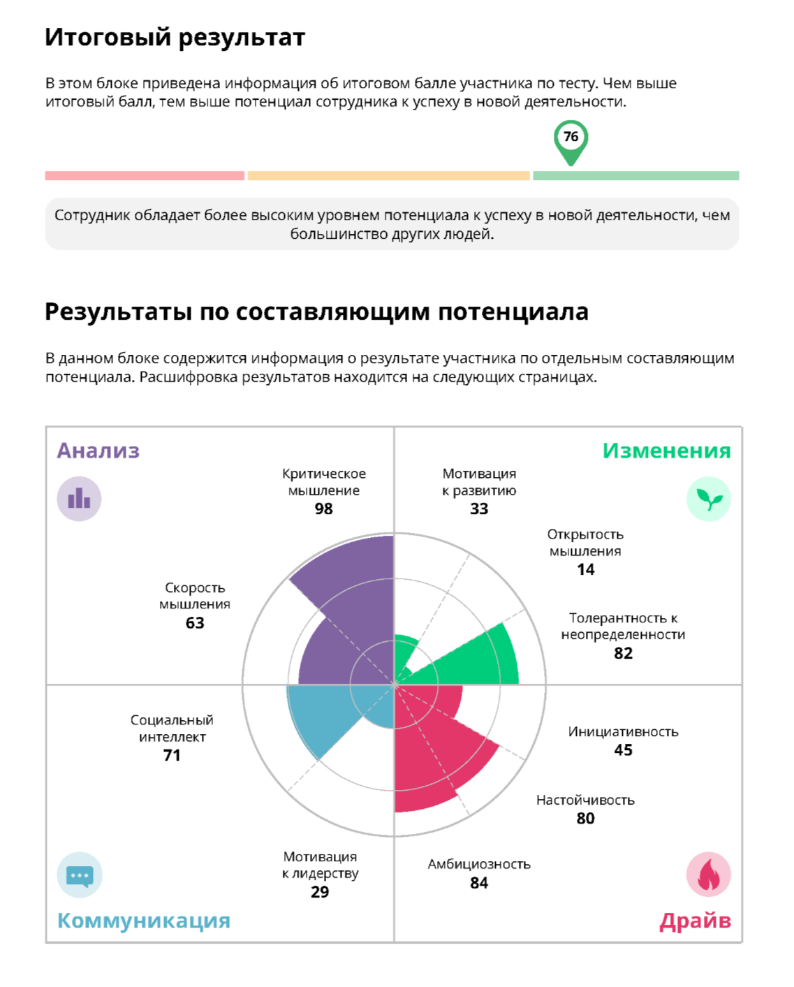 Тест Potential in Focus помогает нам отбирать в Холдинг сотрудников с высоким потенциалом и обеспечивать кадровую защищенность на ключевые должности.